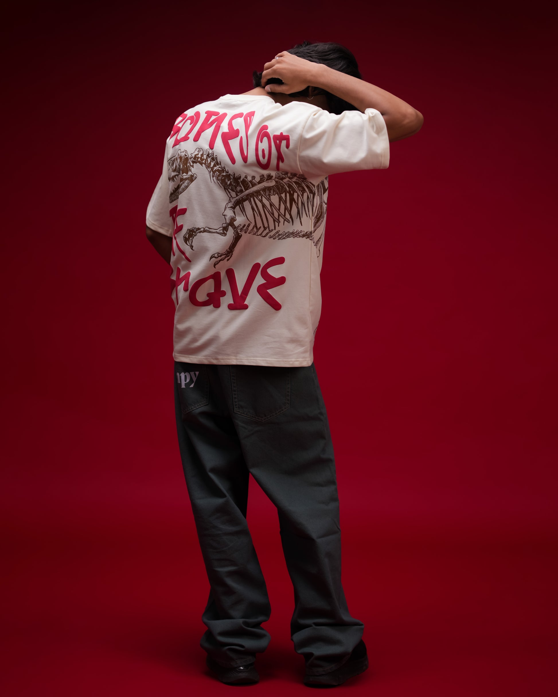 Crafted from 100% premium cotton (260 GSM), this heavyweight silhouette holds its structure, stays soft on-body, and delivers that clean oversized fall. The detailed fossil artwork hits with a dark, primal energy, making this piece perfect for night drives, underground scenes, and everyday power fits.