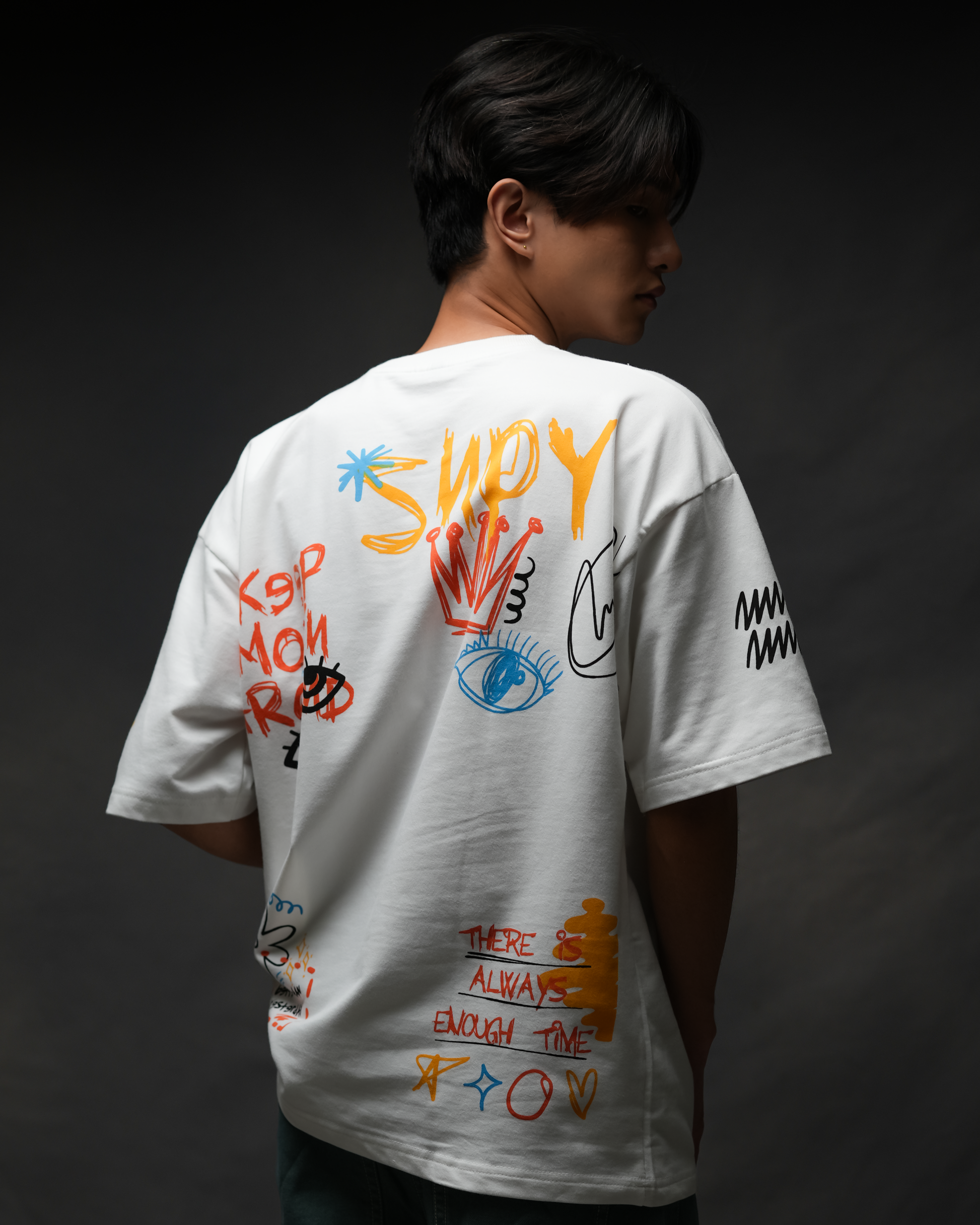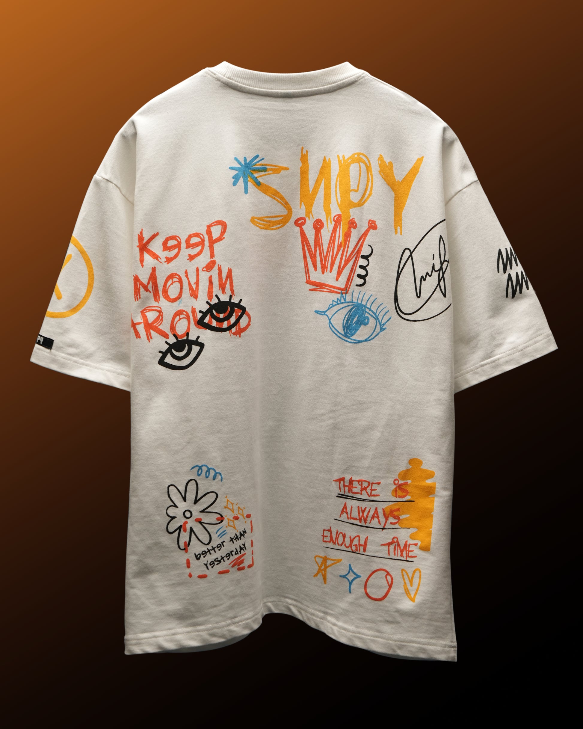 260 gsm, 100% cotton t-shirt featuring keep moving in bold screen print. designed with a rib-knit crew neck and single-needle blind hem construction for a seamless finish.