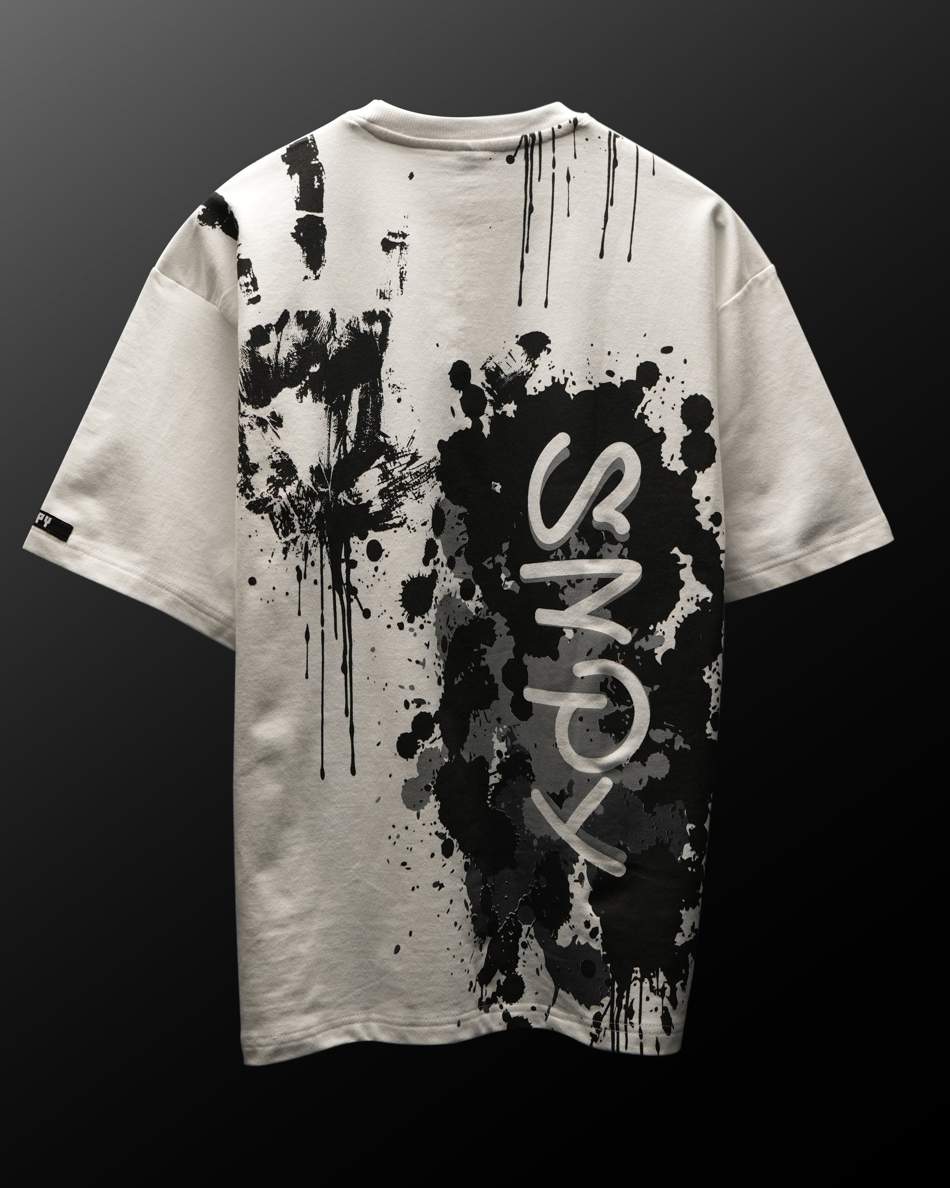 260 gsm, 100% cotton t-shirt featuring an all-over ink splatter design, creating a raw, unpredictable aesthetic. each piece is unique, embodying the chaos of creativity. finished with a rib-knit crew neck and single-needle blind hem construction for a clean, structured fit.